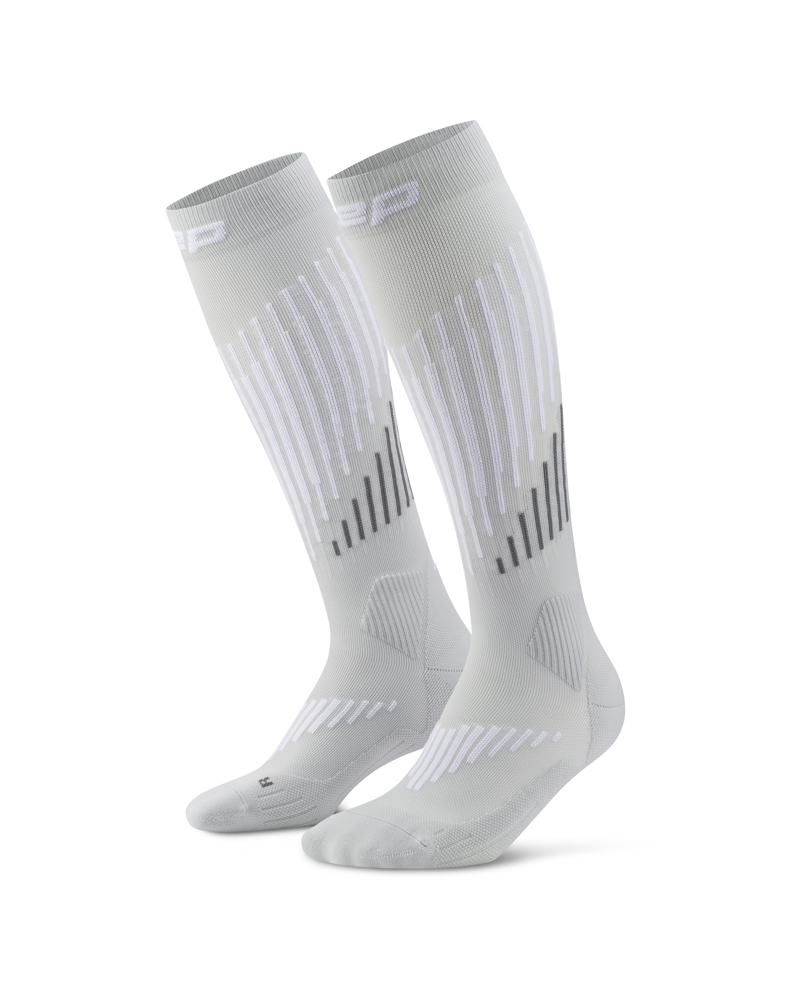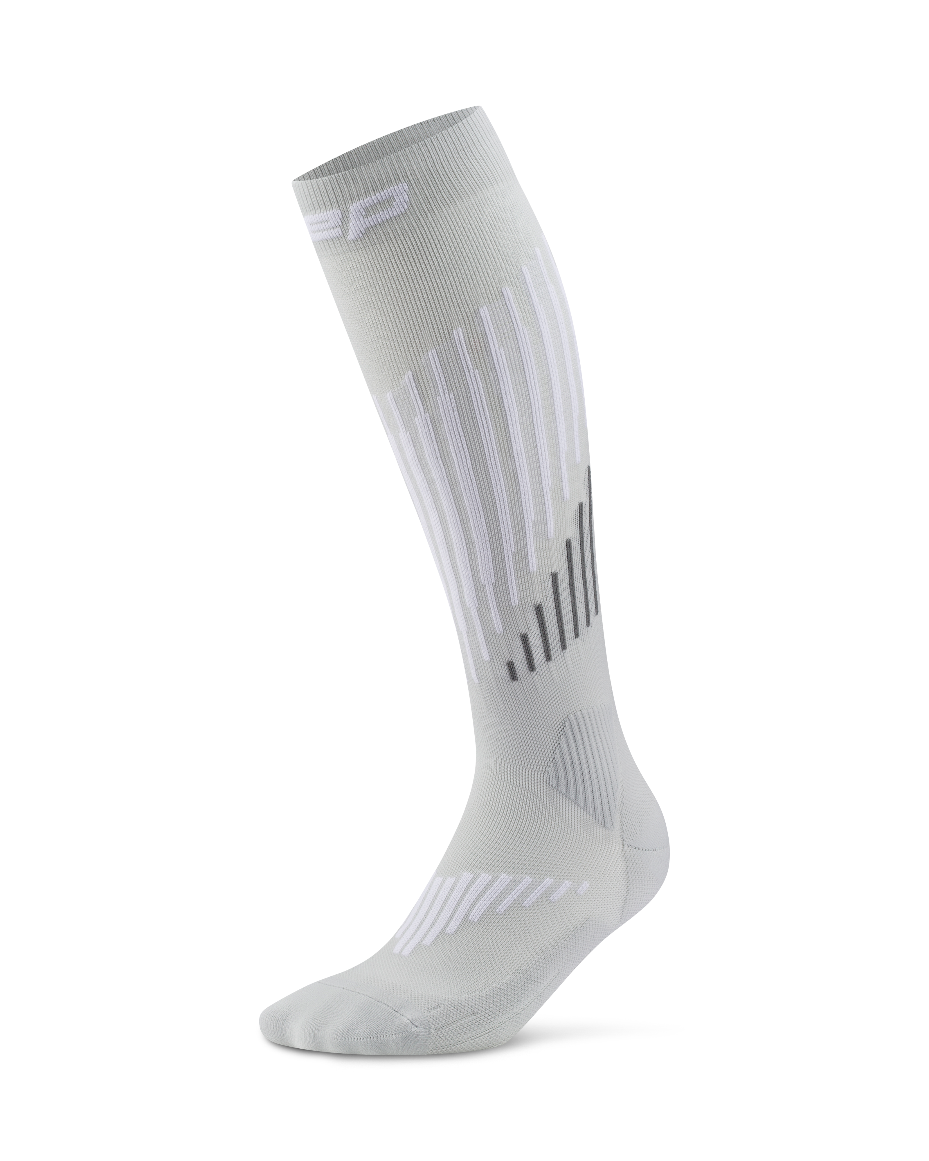 Conquer long climbs and all-day ski tours with the CEP Ski Touring Merino Tall Compression Socks for Women, engineered in Germany for unmatched warmth, support, and comfort. Featuring signature 3D compression technology, these socks boost circulation, stabilize muscles and joints, and reduce fatigue to keep you performing longer on uphill and downhill stretches. Anatomical cushioning, insulated shin zones, and a tailored toe box provide targeted protection and shock absorption in ski boots, while grooved airflow channels and a Merino blend regulate temperature and moisture for optimal comfort. The anti-slip 3D surface ensures a secure fit, preventing chafing and blisters, so you can focus on the tour ahead. Ideal for high-aerobic days, these compression socks combine endurance, recovery, and precise support for every ski touring adventure.